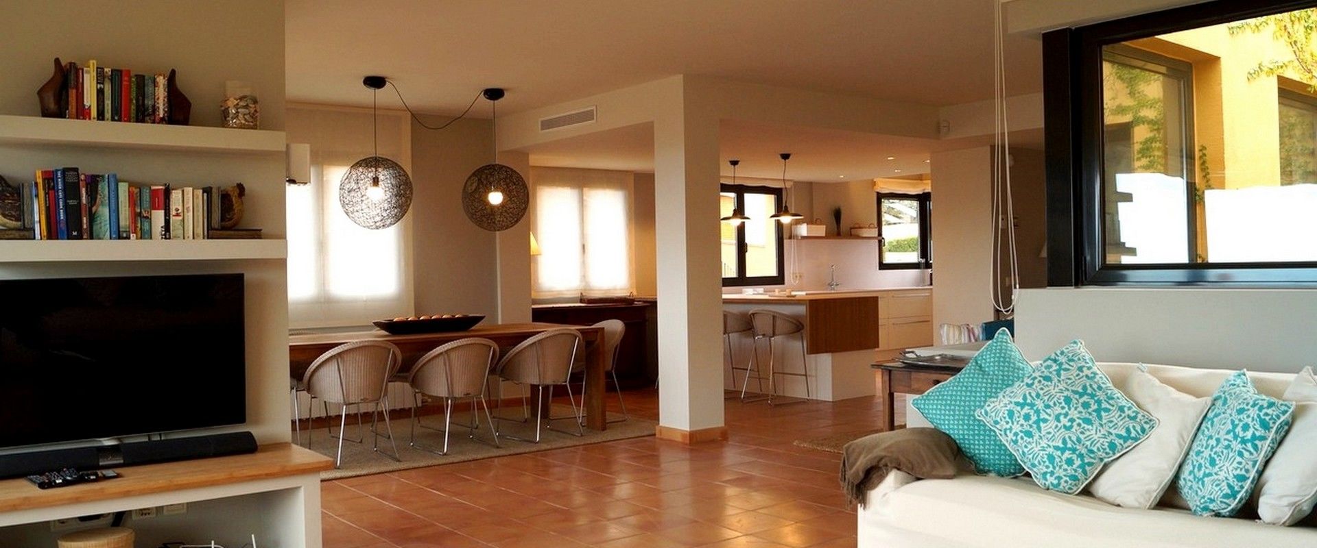 Es gibt überall Klimaanlage. Sowie Zentralheizung, wenn nötig, die das Haus sehr gemütlich macht in den Monaten von Oktober bis Mai. Es gibt überall WIFI, und ein grossen HD-TV, mit Surround-Sound-System.