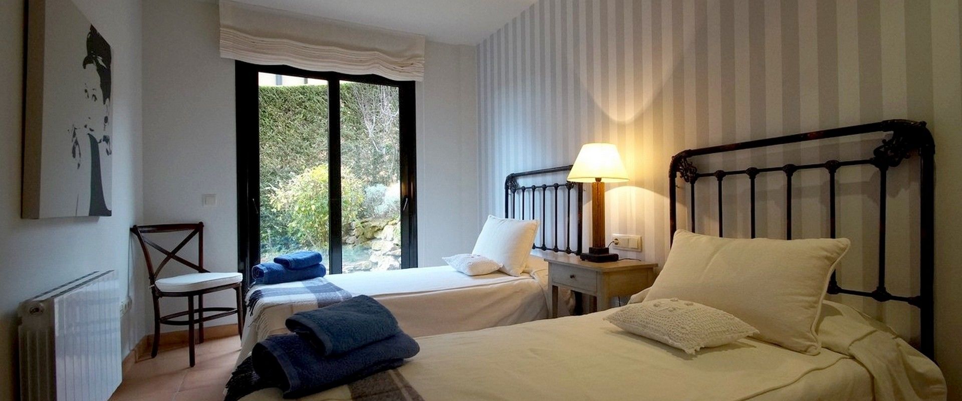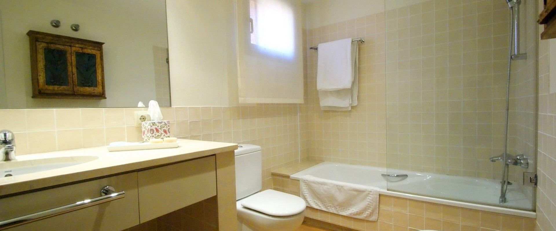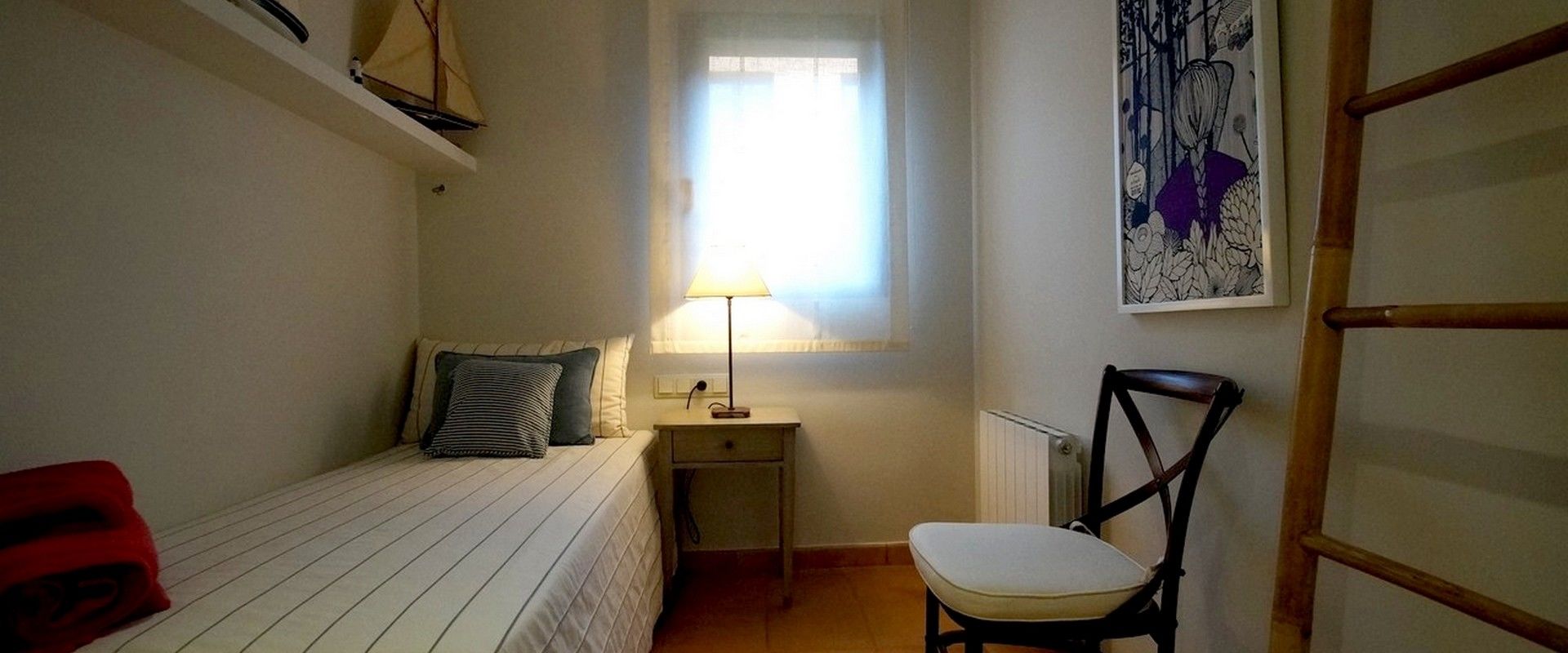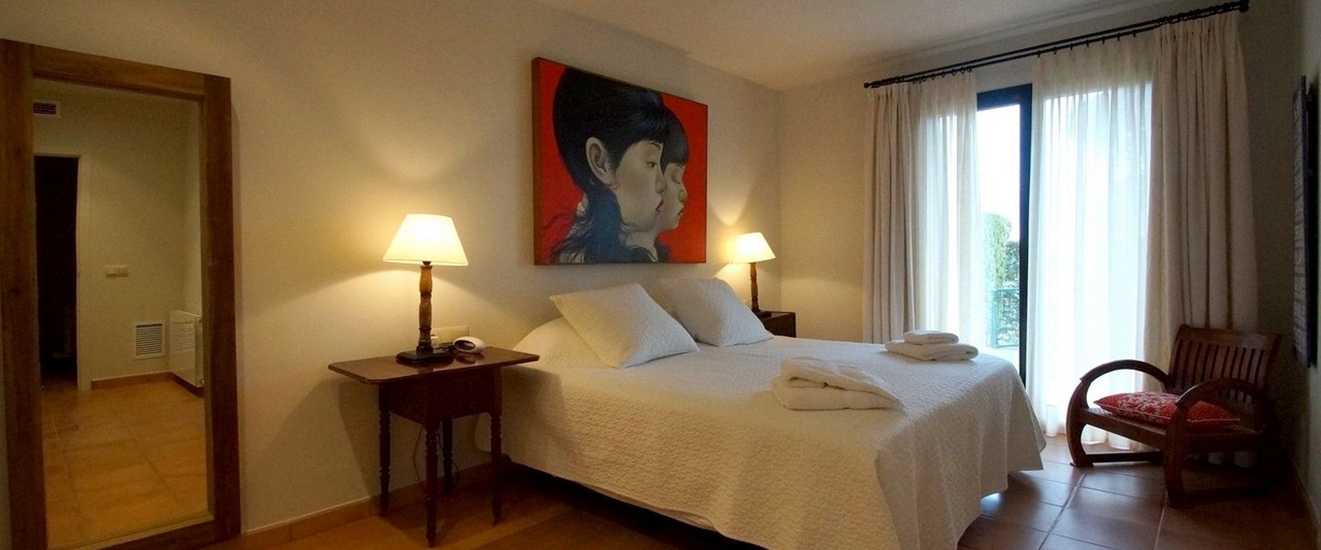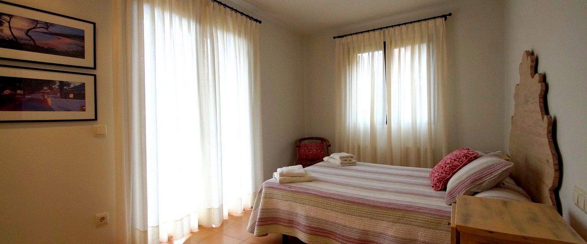 2 Master-Schlafzimmer mit en-suite Badezimmer, ideal für 2 Paare. 1 Zweibettzimmer ideal für Kinder oder Erwachsene und 1 Schlafzimmer mit einem Einzelbett und ein ausziehbares Bett, ideal für 1 Erwachsenen oder 2 Kinder. Beide teilen 1 grosses Badezimmer. Jedes Schlafzimmer hat eine Reihe von Einbauschränken, um Ihren Aufenthalt organisiert und komfortabel zu verbringen.